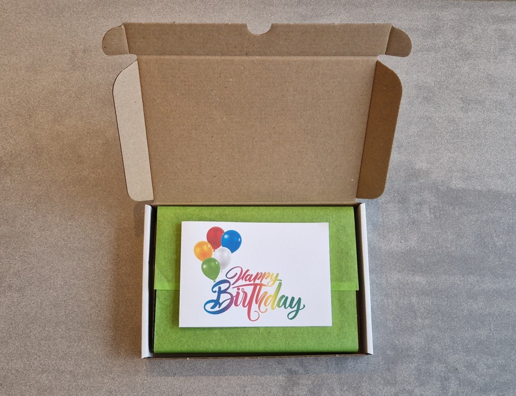 De doos wordt feestelijk verpakt in een groen foliepapier met een logosticker en zit in een brievenbusdoosje voor verzending . Het is mogelijk daar een gratis persoonlijk kaartje aan toe te voegen. Het is mogelijk de chocolade zelf te ontvangen of als je dit als cadeau geeft, direct naar de ontvanger. Noteer in dat geval het adres van de ontvanger.